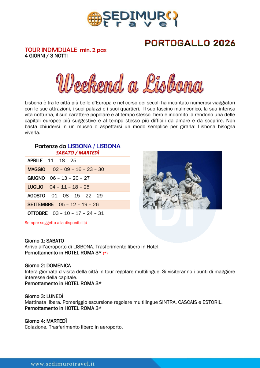 Weekend a Lisbona in tour individuale con visite ed escursione 4 giorni